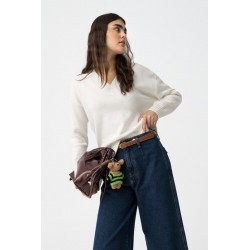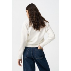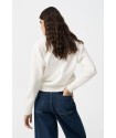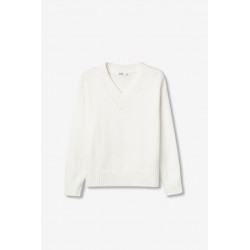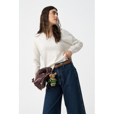 Jersey Valerie Blanco Tiffosi. Jersey relaxed fit en color blanco de punto texturizado con cuello el V. De manga larga acabada en rib al igual que el bajo.