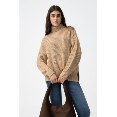 Jersey Aurum 1 Bronceado Tiffosi. Jersey oversize de cuello vuelto en color beige. Detalle de acabado en rib en cuello, puños y bajo.