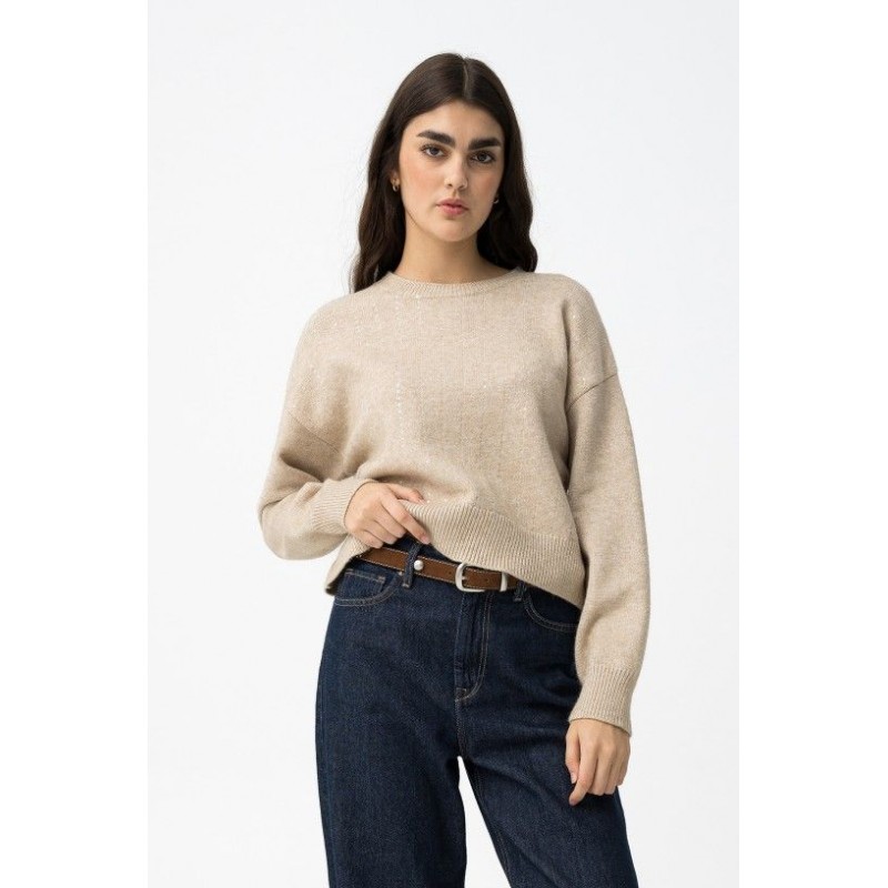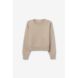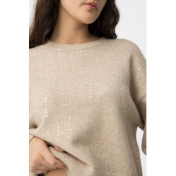 Jersey Apolline 1 Camel Tiffosi. Jersey relaxed fit con base en color canel y detalle de lentejuelas en el frontal dispuestas en vertical. Cuello redondo, manga larga y acabados en canalé.