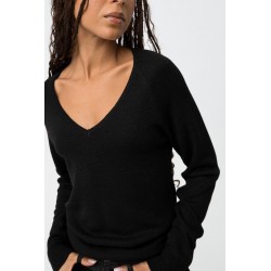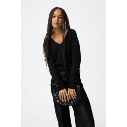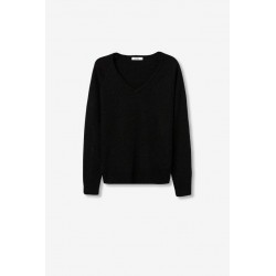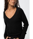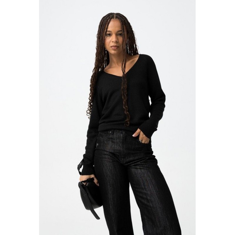Jersey Cassia C Negro Tiffosi. Jersey slim fit con base en color negro e hilo metálico insertado que le aporta un brillo muy original. Escote en V, manga larga y acabados en canalé.