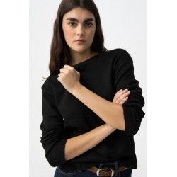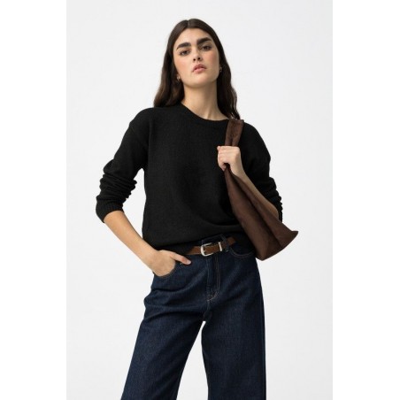 Jersey Amy Negro Tiffosi. Jersey negro de punto suave, manga larga, cuello redondo y puños y bajo en rib.