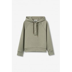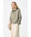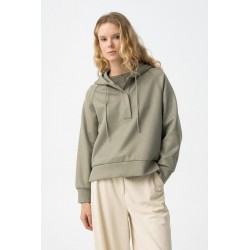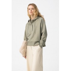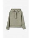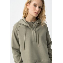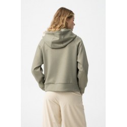 Sudadera Diane Epson Tiffosi. Sudadera verde con acabado metalizado, regular fit con capucha con cordón ajustable, cierre de botones y aberturas en el bajo.