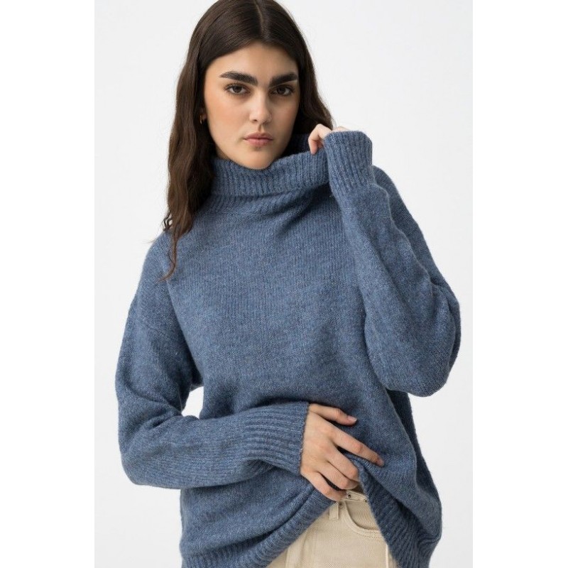 Jersey Suspiria 2 Azul Medianoche Tiffosi. Jersey relaxed fit en color azul con hilo metálico insertado. Cuello vuelto en canalé, así como puños y bajo.