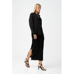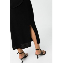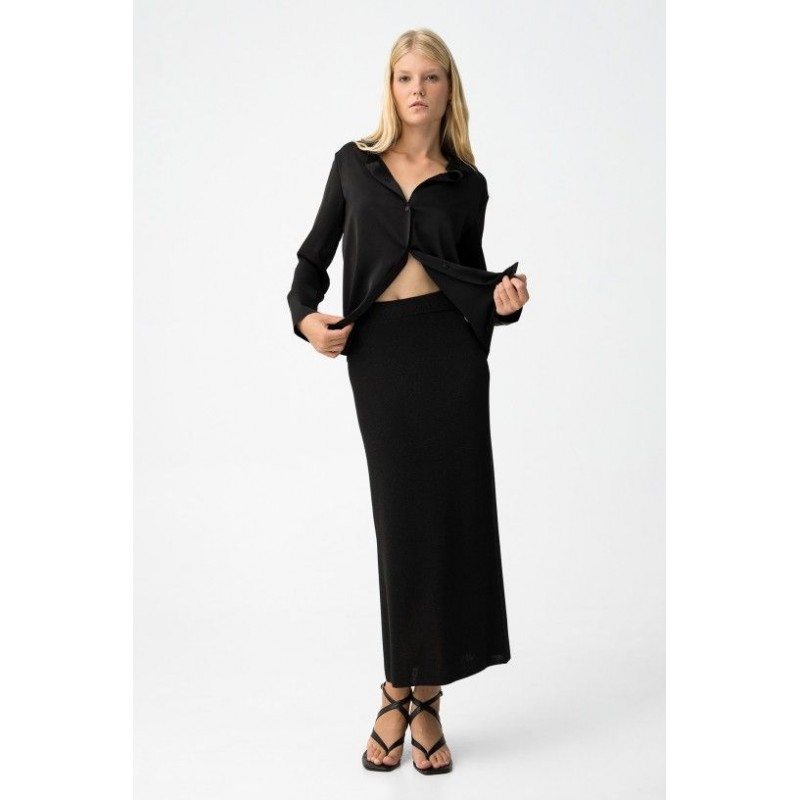 Falda Cassia B Negra Tiffosi. Falda midi con base en color negro e hilo metálico insertado que le aporta un brillo muy original. Cintura elástica y bajo con abertura.