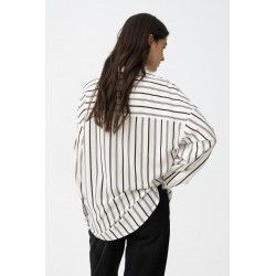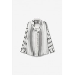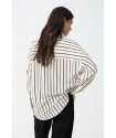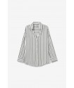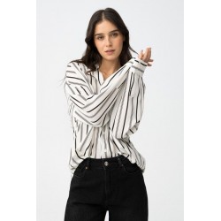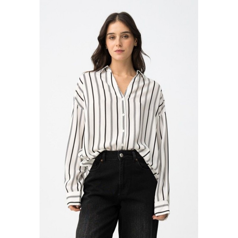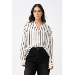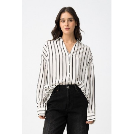 Camisa Buarque 5 Negra Tiffosi. Camisa de botones y cuello pico con solapa en color blanco con rayas negras verticales.