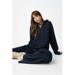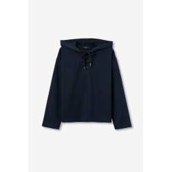 Sudadera Luca C Lyons Blue Tiffosi. Sudadera azul con capucha. Con cuello en uve y cierre de cordón cruzado. las mangas son caídas y ámplias.