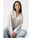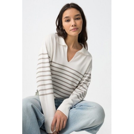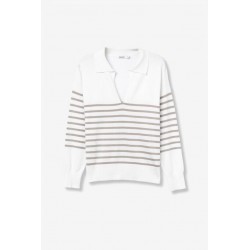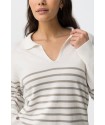 Jersey Vernon Blanco Tiffosi. Jersey de estilo marinero con cuello pico y solapa en color blanco con rayas grises horizontales en la zona central del cuerpo y mangas.