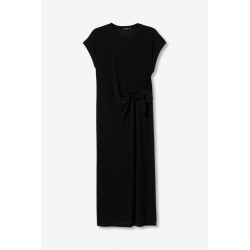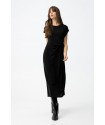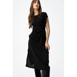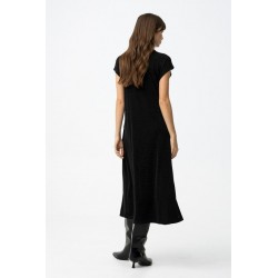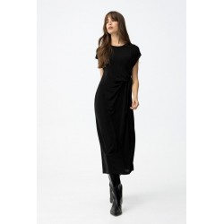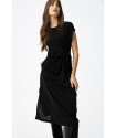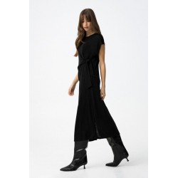 Vestido Alcremie Negro Tiffosi. Vestido midi en color negro con cuello redondo y manga sisa caída. Con detalle de nudo en el lateral izquierdo.