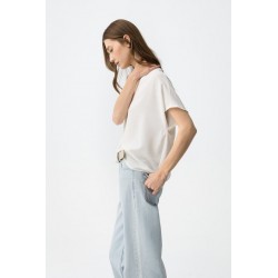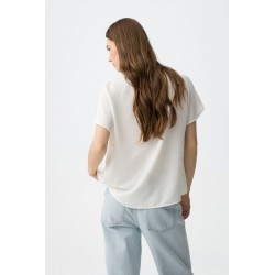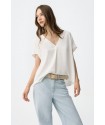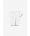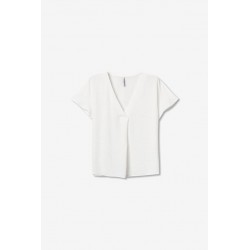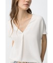 Blusa Maxine 7 Blanca Tiffosi. Blusa básica blanca de manga corta y cuello pico con pliegue cruzado.