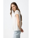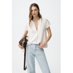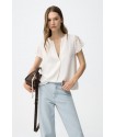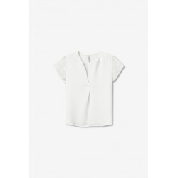 Blusa Nony 1 Blanca Tiffosi. Blusa básica blanca de manga corta texturizada, cuello pico con pliegue cruzado.