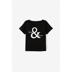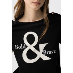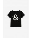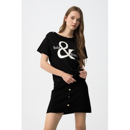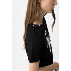 Camiseta Muk Negra Tiffosi. Camiseta básica negra regular fit, con estampado frontal en blanco a contraste y botones dorados en el hombro.