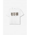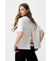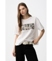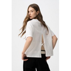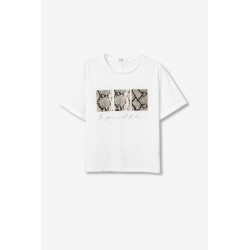 Camiseta Veny Blanca Tiffosi. Camiseta relaxed fit en color blanco con espalda abierta con lazada y frontal con detalle de tejido combinado animal print de serpiente.