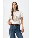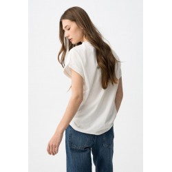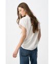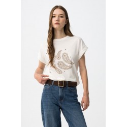 Camiseta Natalie Blanca Tiffosi. Camiseta básica blanca con cuello redondo y manga corta con detalle y con estampado paisley en el frontal .