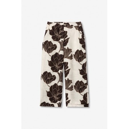 Pantalón Posey 1 Blanco Tiffosi. Pantalón tobillero fluído con estampado floral en marrón. Cierre de cremallera con botón.