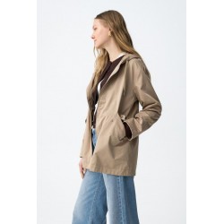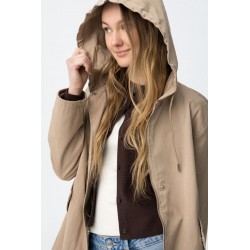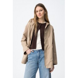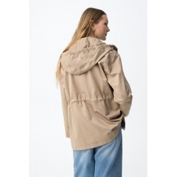 Chaqueta Onix Beige Tiffosi. Chaqueta de corte relaxed en color beige. Con capucha con cordones ajustables y tira ajustable también a la altura de la cintura. Bolsillos con solapa y botón a presión. Cierre de cremallera y botones a presión.