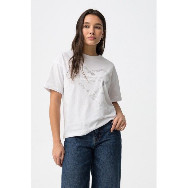 Camiseta Maizena 10 Blanca Tiffosi. Camiseta relaxed fit blanca con cuello redondo y manga corta. Con dibujo delantero en plateado.