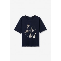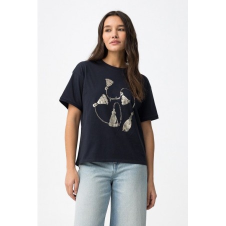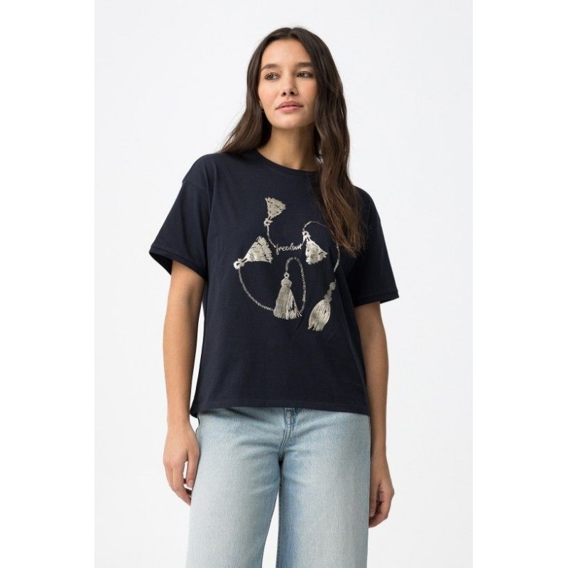 Camiseta Maizena 10 Lyons Blue Tiffosi. Camiseta relaxed fit azul marina con cuello redondo y manga corta. Con dibujo delantero en plateado.