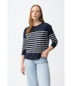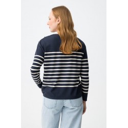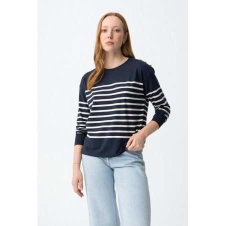 Camiseta Venice 4 Lyons Blue Tiffosi. Camiseta de manga larga con cuello redondo en azul marino con raya marinera blanca. Detalle de pequeños botones dorados en el hombro izquierdo.