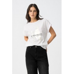 Camiseta Neto Blanco Tiffosi. Camiseta de manga corta y cuello redondo con estampado frontal en tono metálico con farse superpuesta en negro.