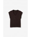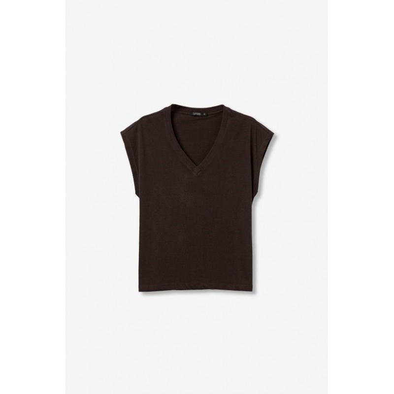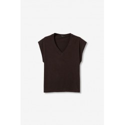 Camiseta Charlize V 2 Chocolate Tiffosi. Camiseta básica de estilo minimalista en color chocolate, con manga sisa caída y cuello pico.