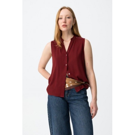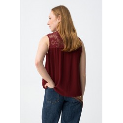 Camiseta Lynx 1 Rojo Tiffosi. Camiseta sin mangas con cierre de botones y detalle de encaje en hombros hacia la espalda de flores.