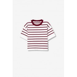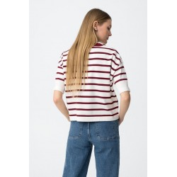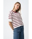 Jersey M Corta Rufina 1 Blanco Tiffosi. Jersey fino tipo camiseta con cuello redondo y manga corta en color blanco con rayas finas horizontales en negro.