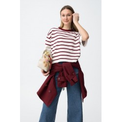 Camiseta Venice 4 LyRojo Tibetano Tiffosi. Camiseta de manga larga con cuello redondo en rojo oscuro con raya marinera blanca. Detalle de pequeños botones dorados en el hombro izquierdo.