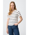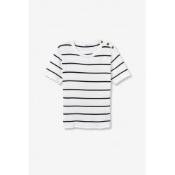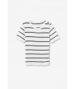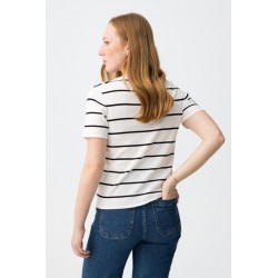 Jersey M Corta Rufina 1 Blanco Tiffosi. Jersey fino tipo camiseta con cuello redondo y manga corta en color blanco con rayas finas horizontales en negro.