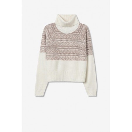 Jersey Cranto Abedul Tiffosi. Jersey de punto con cuello vuelto y manga larga, con base en color crudo lisa y dibujo en salmón.