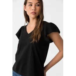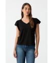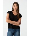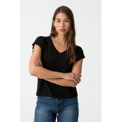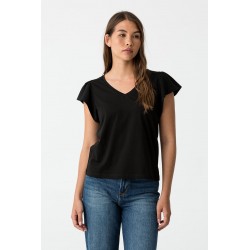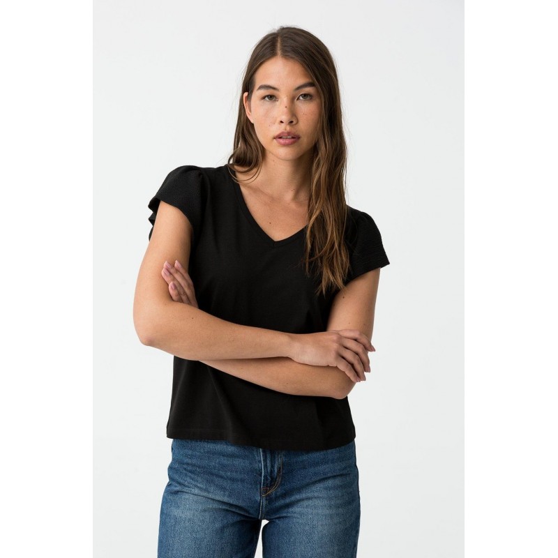 Camiseta Kira 17 Negra Tiffosi. Camiseta básica de cuello pico en color negro con manga corta de volante con textura.