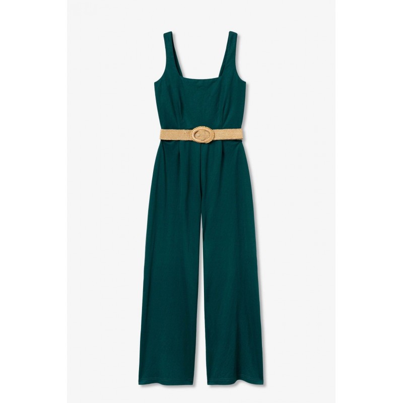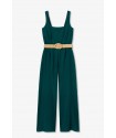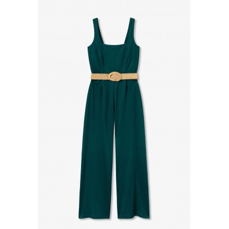 Mono Largo Akita Deep Teal Tiffosi. Mono largo en color verde liso, de tirante ancho y escote cuadrado. Dispone de cinturón efecto paja como complemento.