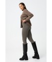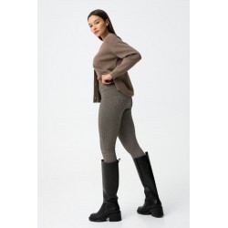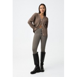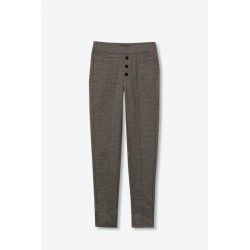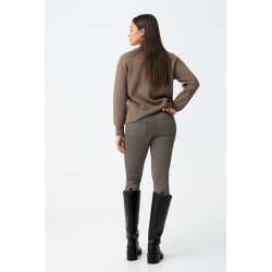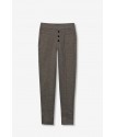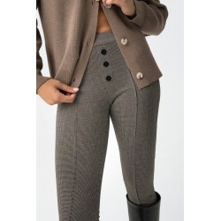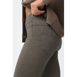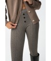 Pantalón Ivone 9 Cemento Tiffosi. Pantalón tipo legging skinny fit, de tiro alto y con cinturilla elástica a cuadros en tonos marrones. Detalle de falsos botones delanteros, costuras verticales y bolsillos traseros. Tejido elástico.