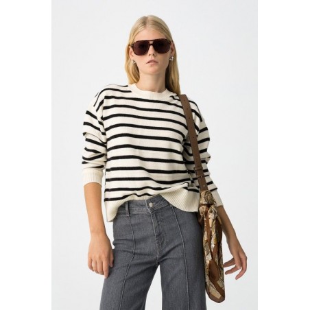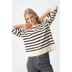 Jersey Tuonela Abedul Tiffosi. Jersey amplio, relaxed fit, a rayas balncas y negras y con detalles en relieve.