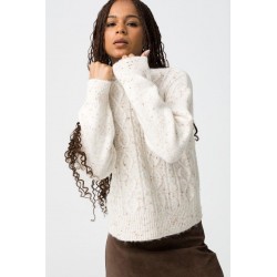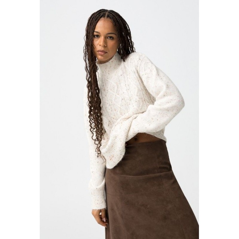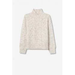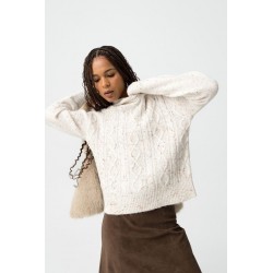 Jersey Hagall Abedul Tiffosi. Jersey trenzado de cuello alto en color abedul con destellos marrones. Regular Fit.