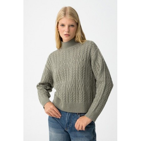 Jersey Mistral Epsom Tiffosi. Jersey efecto trenzado, de cuello alto, en color verde.