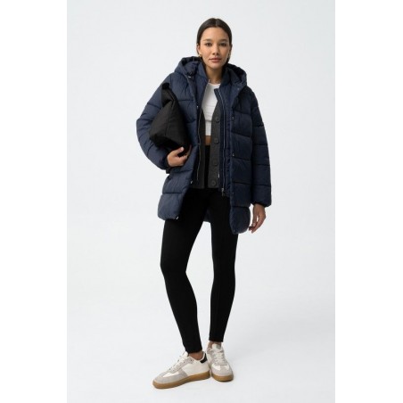 Abrigo Ravina 1 Lyons Blue Tiffosi. Plumax relaxed fit en color azul con bolsillos frontales. Cierre de cremallera frontral con tapeta reforzada con botones a presión. Dispone de capucha y manga larga con puño elástico así como de tira interior de bandolera.