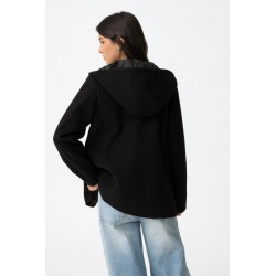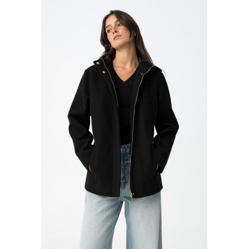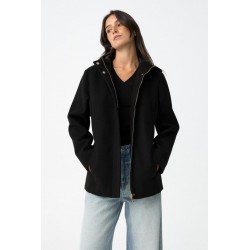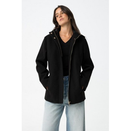 Chaqueta Enny 2 Negra Tiffosi. Cazadora corta regular fit en color negro. Dispone de capucha y bolsillos frontales. Su cierre es de cremallera con tapeta reforzada y cierre de botones a presión.