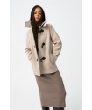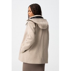 Abrigo Dijon 3 Abedul Tiffosi. Abrigo en color crema, regular fit, con capucha desmontable y cuello camisero. Cierre alternado en la parte delantera y bolsillos laterales.
