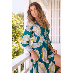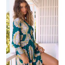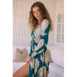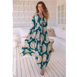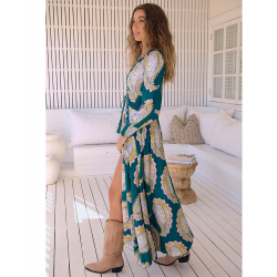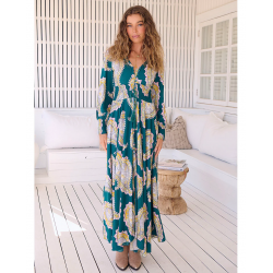 Vestido Sunseeker Melissa Maxi de la marca Jaase. Vestido largo de manga corta tipo volante sobrepuesto y cinturilla ajustable con cordon interior.