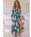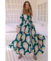 Escote pico cerrado con botones hasta la zona de la cinturilla y falda formada por 3 volantes en cascada.