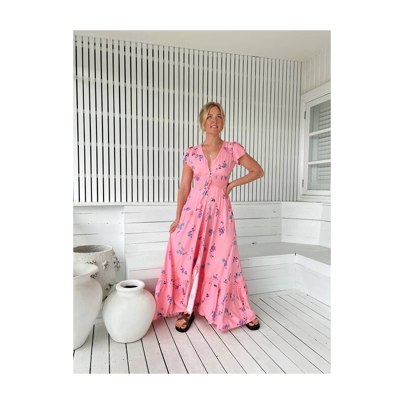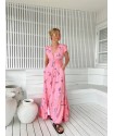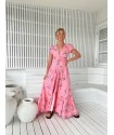 Vestido Rosella Tessa de Jaase. Vestido largo con un estampado increible de grandes flores sobre fondo rojo.