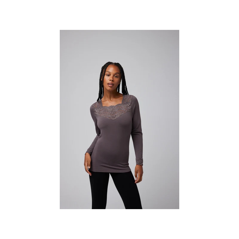 - Mix perfecto entre comodidad y elegancia con la camiseta térmica de manga larga con encaje