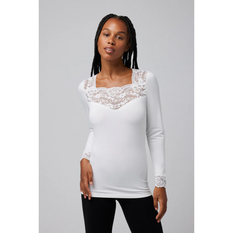 - Mix perfecto entre comodidad y elegancia con la camiseta térmica de manga larga con encaje
