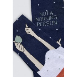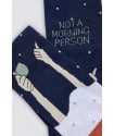Pack regalo 3 calcetines not a morning person. Pack de 3 calcetines de caña alta con estampados graficos varidos, con puño antipresión que sujeta sin dejar marcas para un confort diario original. Presentados en un packaging especial ideal para regalar con estilo.