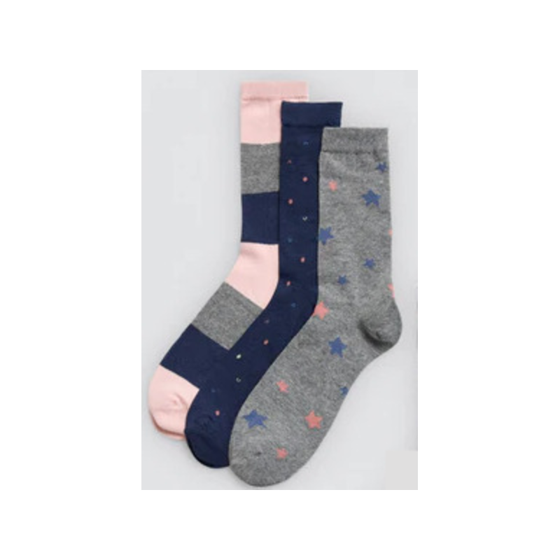 <p><strong>Pack 3 calcetines estampados. </strong>Pack de 3 pares de calcetines para mujer con puño antipresión y estampados originales.</p>