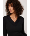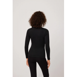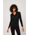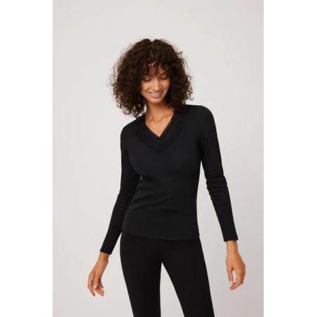 Camiseta térmica Ligera pico encaje Negro . Camiseta térmica de manga larga con cuello pico de encaje en tejido suave y agradable al tacto.