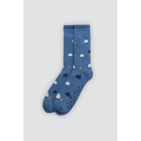 Calcetín térmico antideslizante estampado Nubes. Calcetines estampados térmicos con puño antipresión. Gomas en la parte inferior para el efecto antideslizante