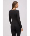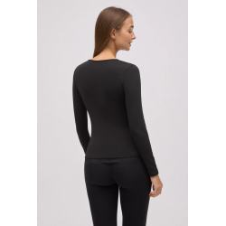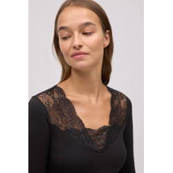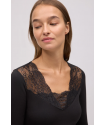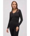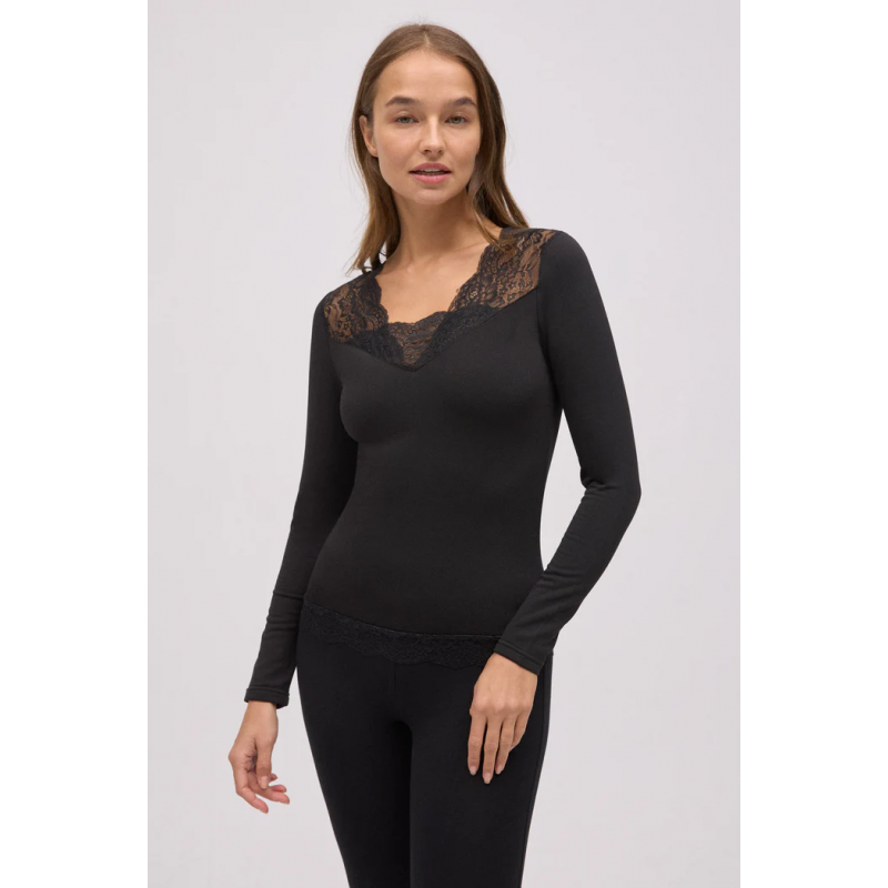 Camiseta térmica Ligera pico encaje Negro . Camiseta térmica de manga larga con cuello pico de encaje en tejido suave y agradable al tacto.