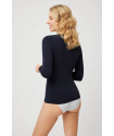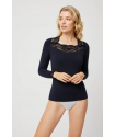 Camiseta térmica Ligera pico encaje Negro . Camiseta térmica de manga larga con cuello pico de encaje en tejido suave y agradable al tacto.